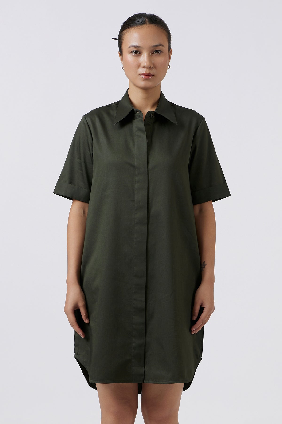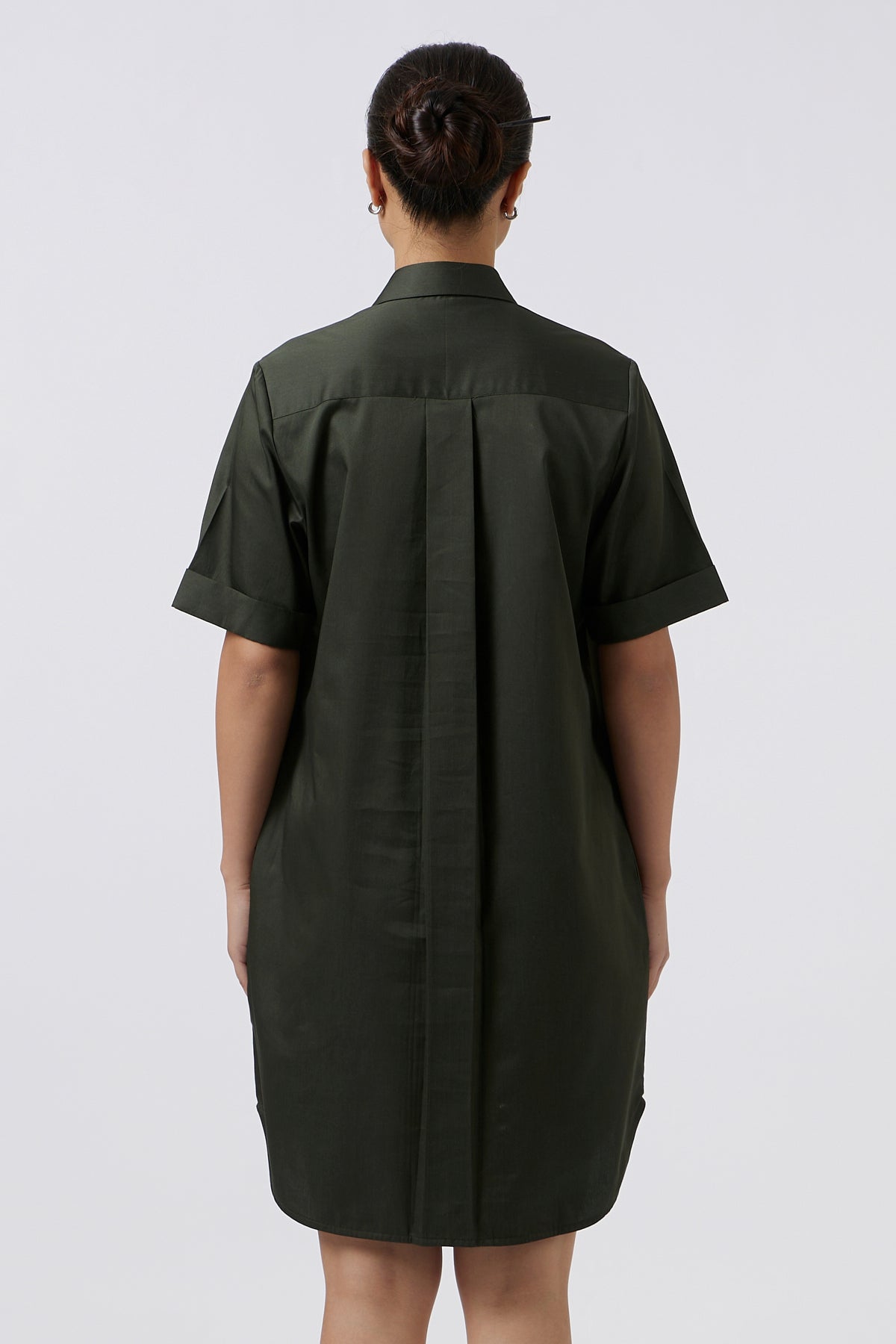 Relaxed fit shirt dress is crafted with a timeless silhouette that blends comfort and polish. Designed with a classic collar, half sleeves, and a full front button opening, it offers versatile styling for day-to-evening wear. Thoughtfully placed side pockets add a touch of ease and functionality, making it a wardrobe staple that’s as practical as it is elegant.